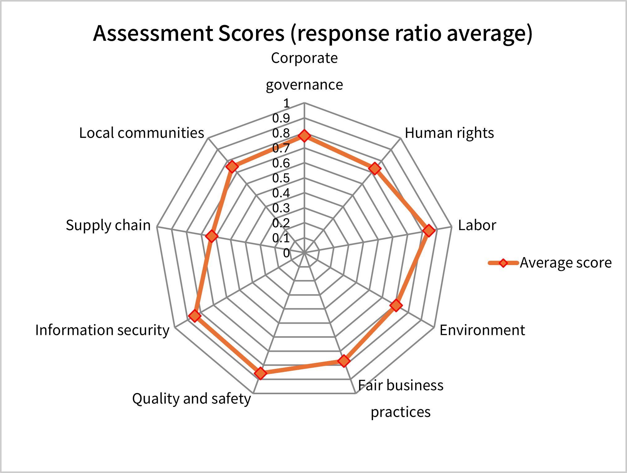 Corporate governance, Human rights, Labor, Environment, Fair business practices, Quality and safety, Information security, Supply chain, Local communities
